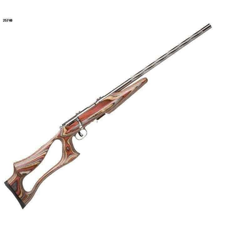 Savage Mark II 22 Long Rifle Satin Stainless Bolt Action Rifle – 21in – Mark II rimfire rifles add more fun to shooting than almost anything else for the money. From casual plinking to serious hunting, this versatile rifle can handle it all with match-grade accuracy. BSEV provides everything you want in a bolt-action 22 repeater, including a long-range, heavy steel barrel for precision shooting. The detachable box magazine and 21in spiral-fluted barrel are set in a thumbhole stock with a Monte Carlo comb in a modern multi-color wood-grain laminate. AccuTrigger, the shooter-adjusted trigger from Savage, is a standard feature for no-creep, crisp trigger pulls and enhanced accuracy while allowing non-compromising adjustability with no gunsmithing. The BSEV model is a great target rifle that also adds a touch of style to any gun collection.